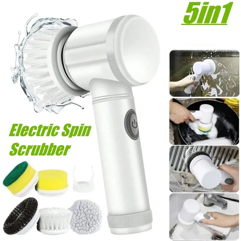 5in1 Spin Scrubber Cleaning Brush Cordless Power Scrubber with Replaceable Brush Heads Handheld Power Scrubber