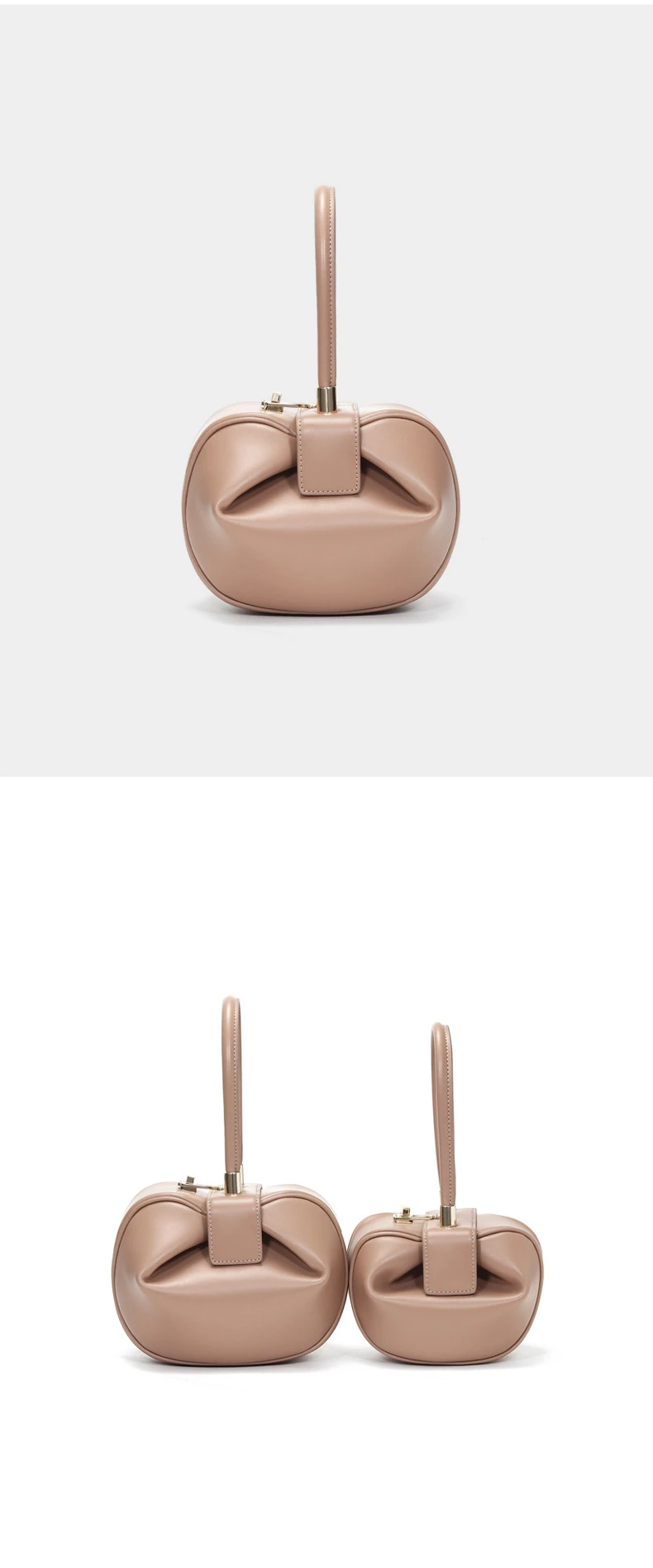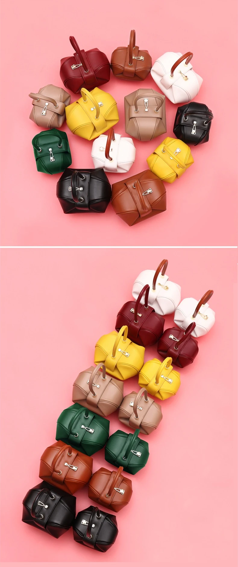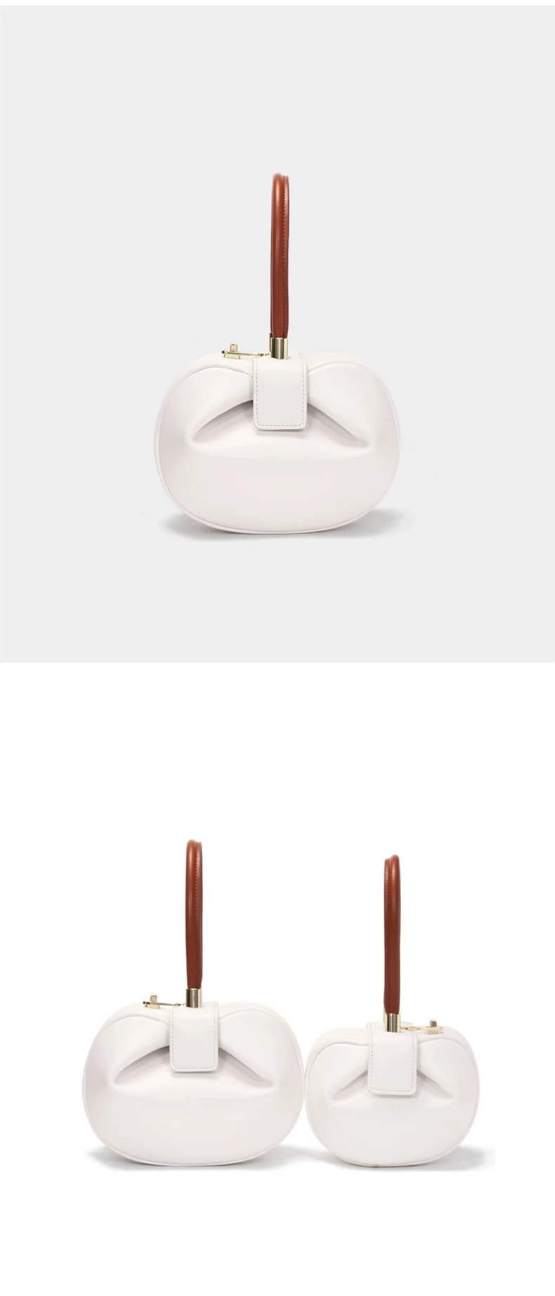 Burminsa Cowhide Genuine Leather Spherical Small Tote Bag For Women 2025 Trend Designer Evening Purse Top Handle Ladies Handbags