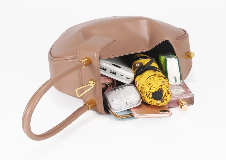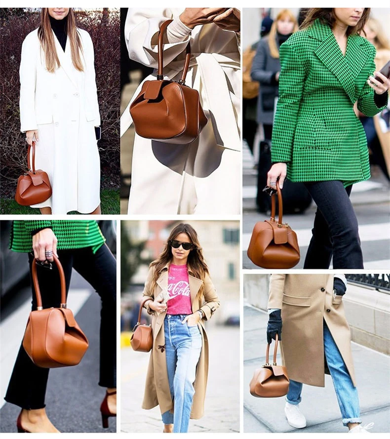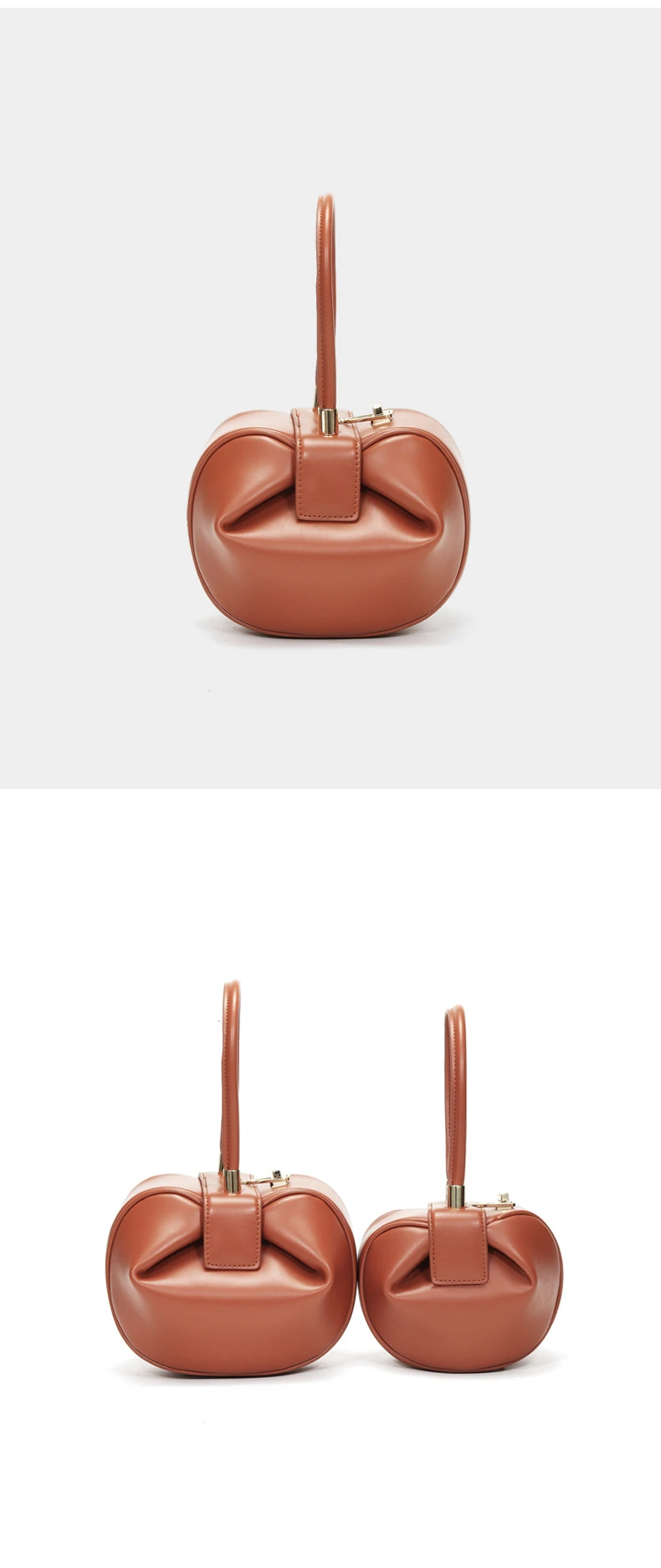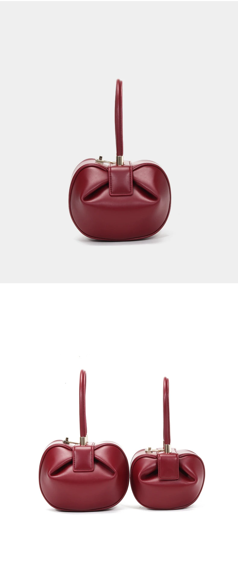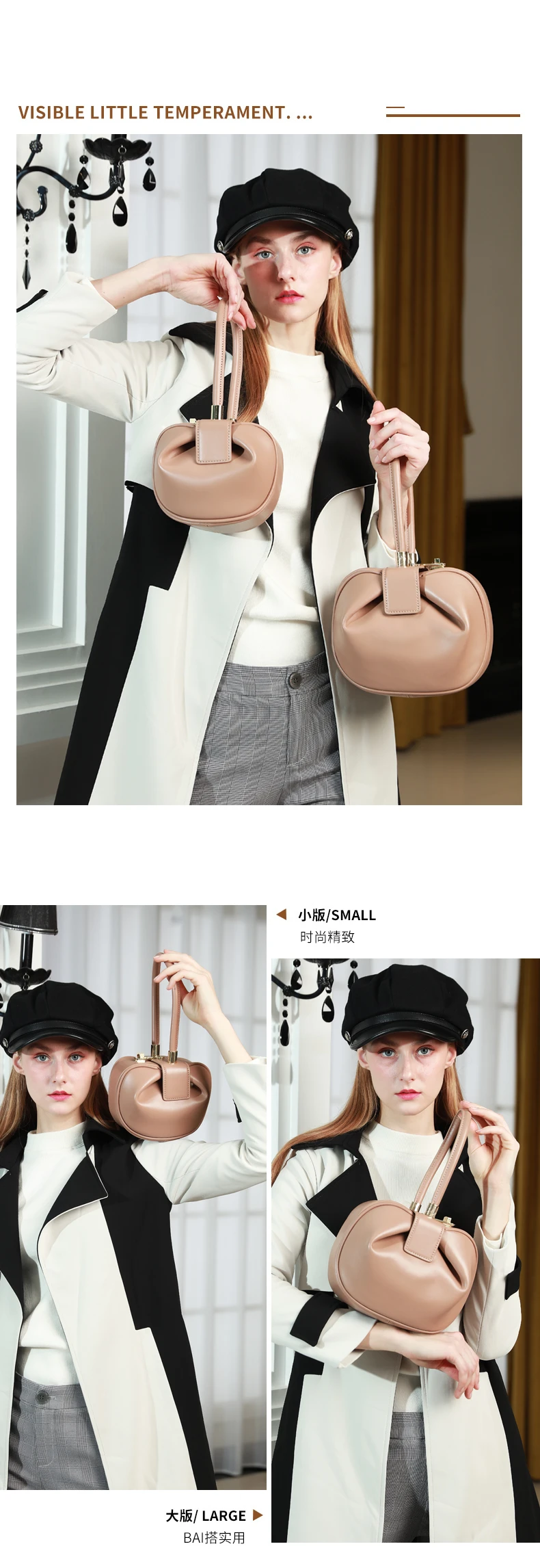 Burminsa Cowhide Genuine Leather Spherical Small Tote Bag For Women 2025 Trend Designer Evening Purse Top Handle Ladies Handbags