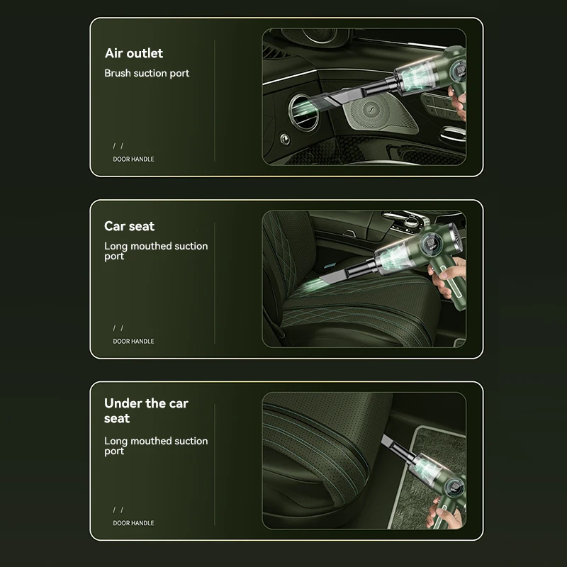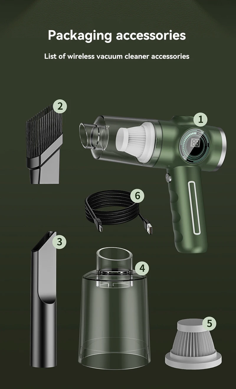 【Long Battery Life and Fast Charging】Using multiple 2000mAh lithium-ion batteries and fast charging technology, the battery life can be extended by about 60 minutes after being fully charged. Our fast charging technology includes lithium-ion battery surge protection to ensure safe operation. LED lights on cordless car vacuums are great for lighting up those dark, hard-to-see places.