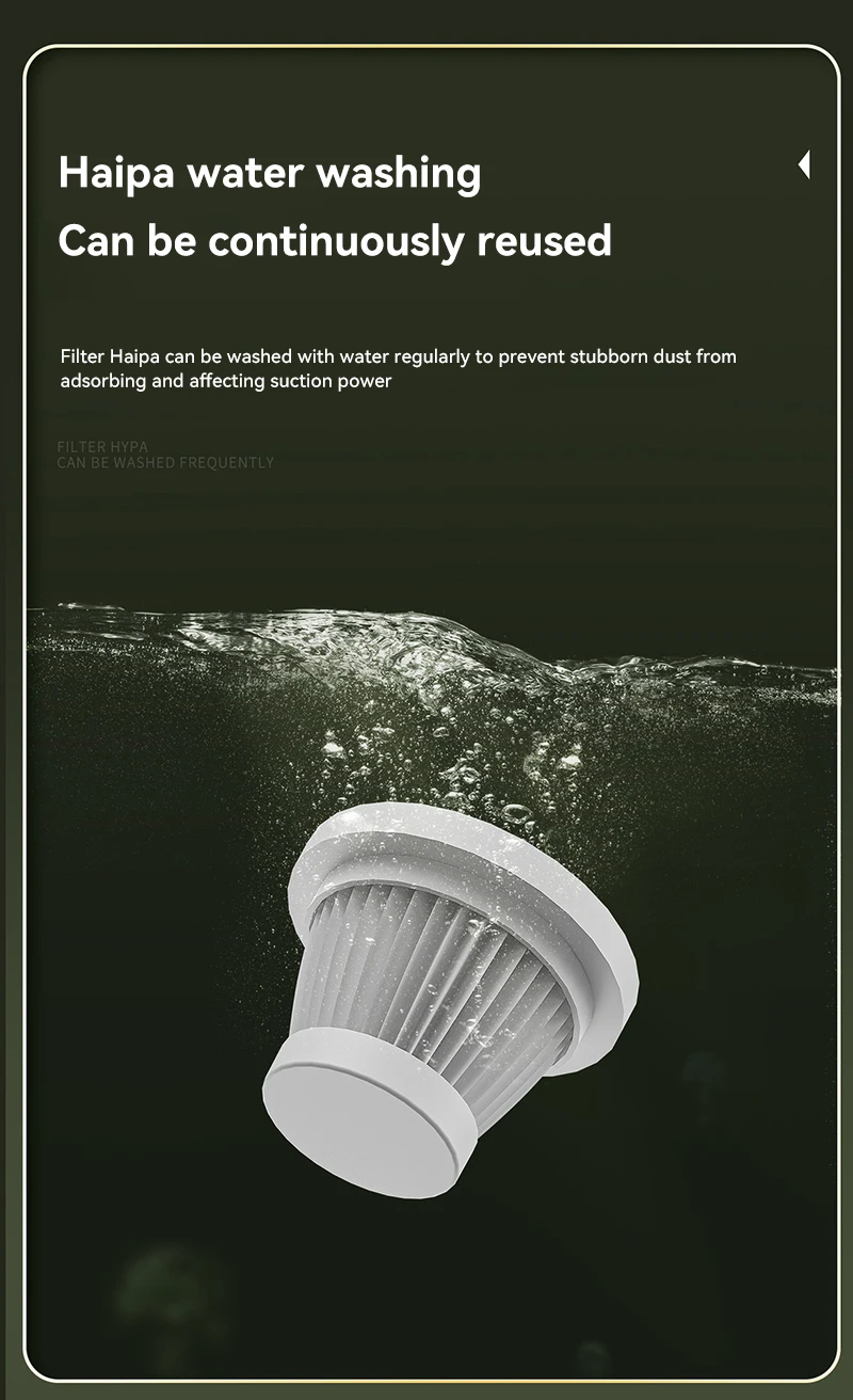【Professional Accessories Solve More Cleaning Problems】The dusting brush and crevice tool can reach most cup holders and car storage compartments. Extension tubes keep dust off baseboards, blinds and pesky cobwebs in ceiling corners. Use additional accessories to cover every inch of your home. Handheld vacuum cleaner with removable, washable and reusable durable HEPA filter. After cleaning the filter, let it dry before putting it back into the vacuum.